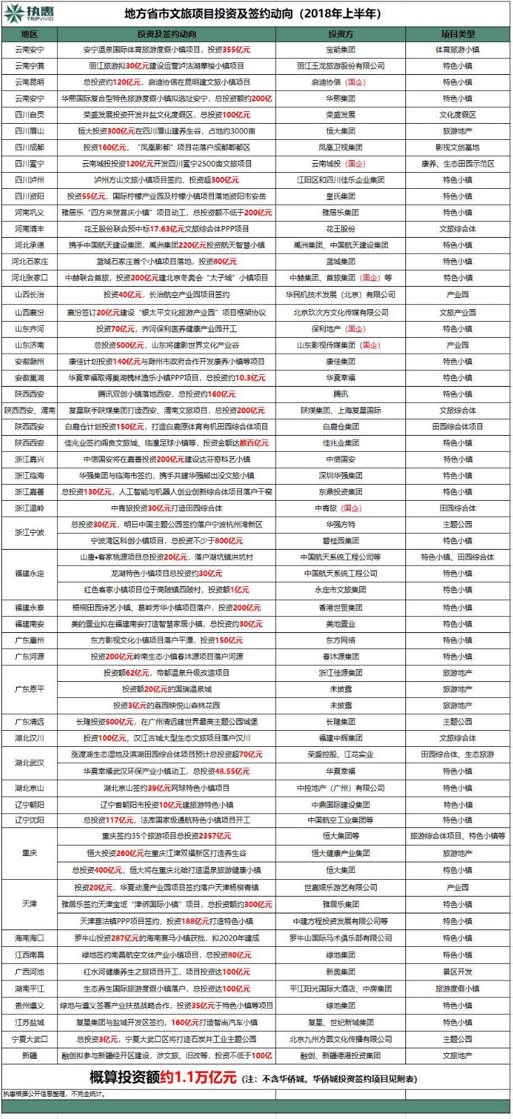 2018年上半年各地文旅項(xiàng)目投資及簽約動向