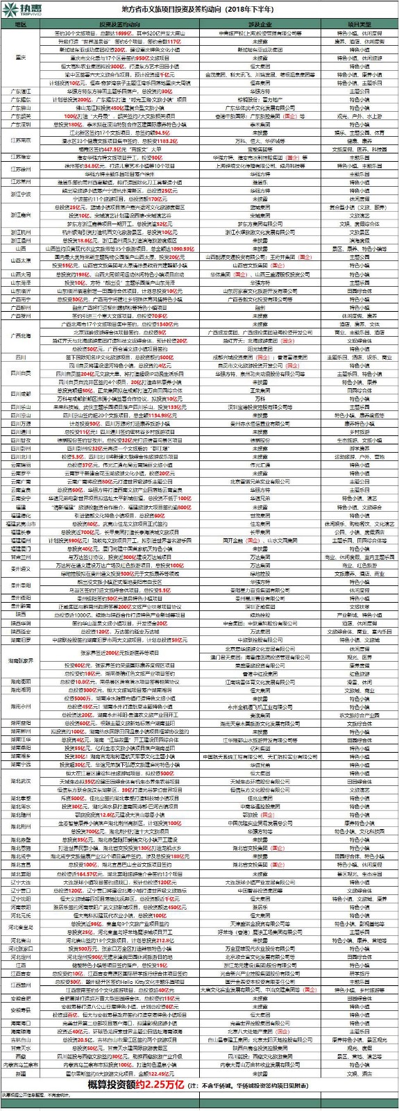 2018年下半年各地文旅項(xiàng)目投資及簽約動向