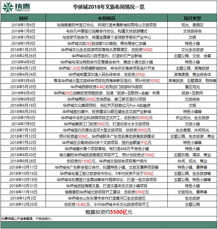 這延續(xù)了2018年特色小鎮(zhèn)建設(shè)熱潮的勢頭,亦是2018年初至今文旅投資態(tài)勢的一個(gè)縮影。執(zhí)惠梳理發(fā)現(xiàn),2018年全年,國內(nèi)文旅項(xiàng)目投資及簽約概算總額近4萬億元,其中華僑城以5500億元占比超一成,激進(jìn)之態(tài),可見一斑。