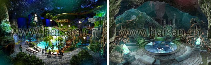 以探尋“李教授發(fā)現(xiàn)的地心螢石礦”為主線,打造以地心奇遇為主題的地下游玩空間,將跌宕起伏的故事貫穿于所有的冒險(xiǎn)項(xiàng)目、溫泉項(xiàng)目和戲水項(xiàng)目當(dāng)中,游客在體驗(yàn)設(shè)備驚險(xiǎn)刺激和溫泉養(yǎng)生愜意的同時(shí),感受主人公的智慧和勇氣。身臨其境般融入到主人公的奇遇之旅中,開啟神秘的地心奇遇。