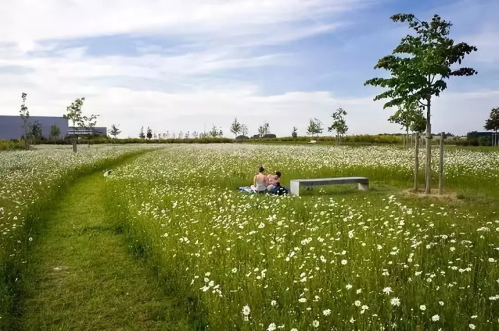 原本風(fēng)光無限的鄉(xiāng)村景觀進行保護和保留,可套種高大的開花植物或者有色葉植物,增加藝術(shù)裝置烘托田園風(fēng)光的意境。