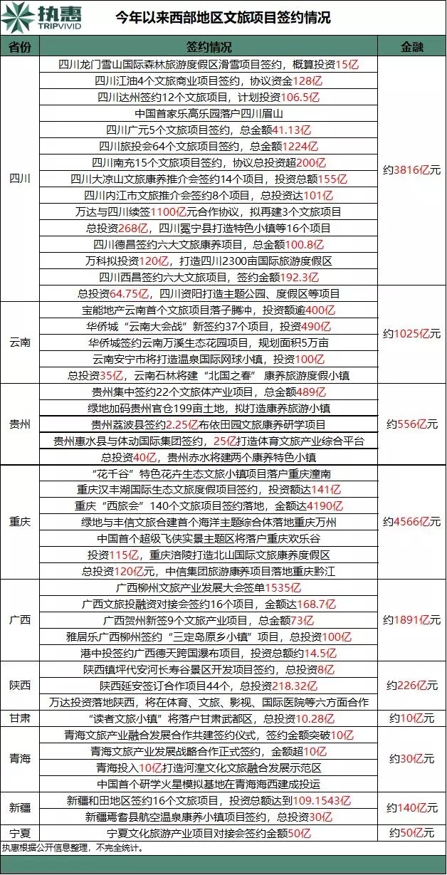 隨著文旅項目簽約后的陸續(xù)推進,西部地區(qū)文旅市場勢必擴容,未來項目投建料將迎來井噴之勢。