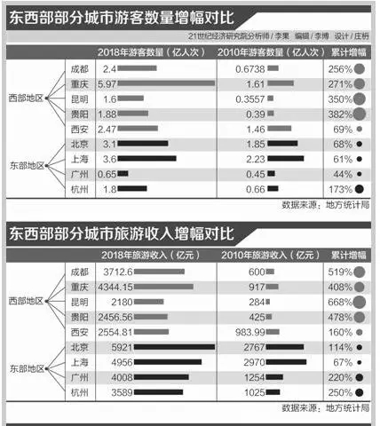 過去幾年,西部地區(qū)旅游業(yè)發(fā)展十分迅速,尤其以西南的成都、重慶、昆明、貴州等旅游城市最為突出。