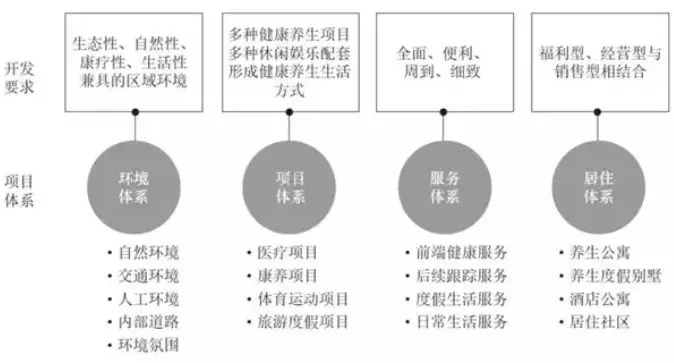 康養(yǎng)地產(chǎn)建立在旅游產(chǎn)業(yè)、休閑產(chǎn)業(yè)、文化產(chǎn)業(yè)、健康產(chǎn)業(yè)及養(yǎng)老產(chǎn)業(yè)基礎(chǔ)之上,以中國傳統(tǒng)的養(yǎng)生的理念及方法去解決養(yǎng)老問題的復(fù)合型房地產(chǎn)開發(fā)模式。