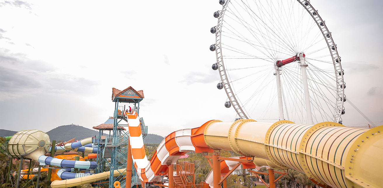 水公園融合特色文化元素與現(xiàn)代水上游樂體驗(yàn),打造海島主題水樂園,配有近20項(xiàng)亞洲先進(jìn)的水上游樂設(shè)備,部分設(shè)備由海山游樂提供。于2019年中秋小長假試營業(yè),試營業(yè)期間,三天迎客16萬人,交出了“開門紅”的成績。