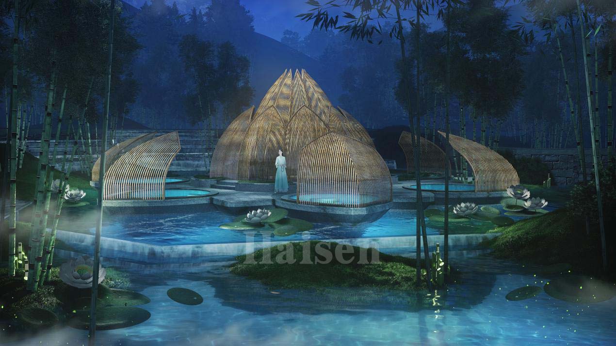 項(xiàng)目設(shè)計(jì)定位以森林生態(tài)為基,以禪文化為靈魂,以竹文化為主題,地域特色禪宗文化與竹文化,溫泉養(yǎng)生文化結(jié)合指導(dǎo)溫泉設(shè)計(jì);由表及里,以形表意,竹空即禪空,竹心空空,禪心無(wú)塵,以泉入境,以竹入禪,空竹映禪心,塑造人與內(nèi)心,人與自然對(duì)話空間, 體驗(yàn)一場(chǎng)素心悟禪的歷經(jīng);最終以“空竹禪心”為主題,以溫泉康養(yǎng)、生態(tài)休閑、理療康復(fù)、文化體驗(yàn)等為功能,打造現(xiàn)代溫泉康養(yǎng)生活方式,形成主題式、復(fù)合式的精品度假禪泉養(yǎng)生谷。