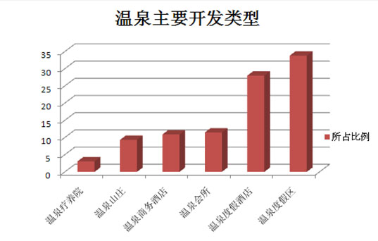據(jù)《中國溫泉旅游產(chǎn)業(yè)發(fā)展報(bào)告(2014)》統(tǒng)計(jì),目前中國內(nèi)地溫泉旅游開發(fā)模式多樣,但溫泉度假區(qū)是最廣泛的一種開發(fā)模式。